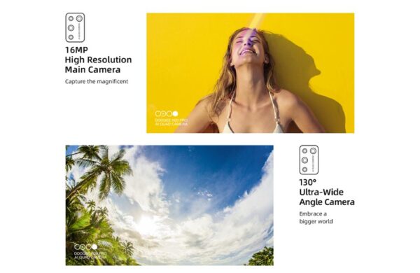Features: Ultra wide-angle mode, AI scenes detection,Macro mode,Portrait mode, Panorama mode,HDR, AI Beautify, Ultra wide-angle edge distortion correction, Dual LED flash, Face recognition, Real-time filters